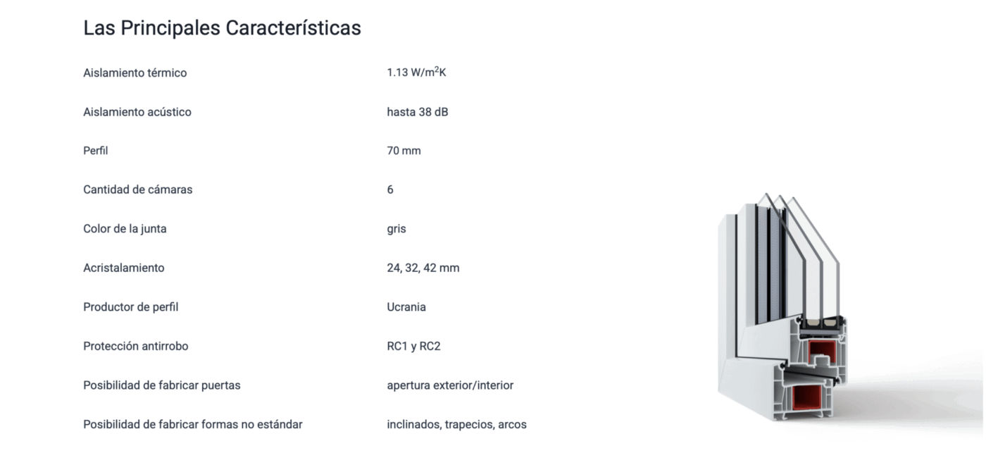 Con las ventanas MegaLine 600, su hogar será seguro, luminoso y cálido. Con una profundidad de instalación de 70 mm y un ancho de acristalamiento de 24 o 32 mm, su hogar se convertirá en una pequeña fortaleza, protegida del viento, la lluvia, el frío o el calor sofocante. Para este tipo de perfil recomendamos los herrajes alemanes Siegenia Favorit. Las ventanas MegaLine 600 se producen en Ucrania en una planta con una superficie de 50.000 m2. Las ventanas resisten con éxito las heladas invernales de hasta 30 grados y el calor del verano hasta 70. Caída de temperatura de 100 grados.