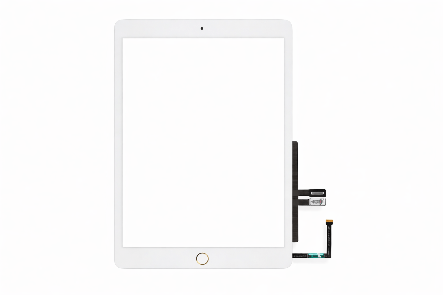 Pantalla táctil color blanco con botón Home dorado y flex incluido, compatible con iPad 6ª generación. Repuesto de alta calidad, ideal para reemplazar pantallas dañadas o con fallas táctiles. Ofrece excelente respuesta al tacto, ajuste perfecto y un acabado similar al original, manteniendo la estética del equipo. Recomendada para reparaciones profesionales.